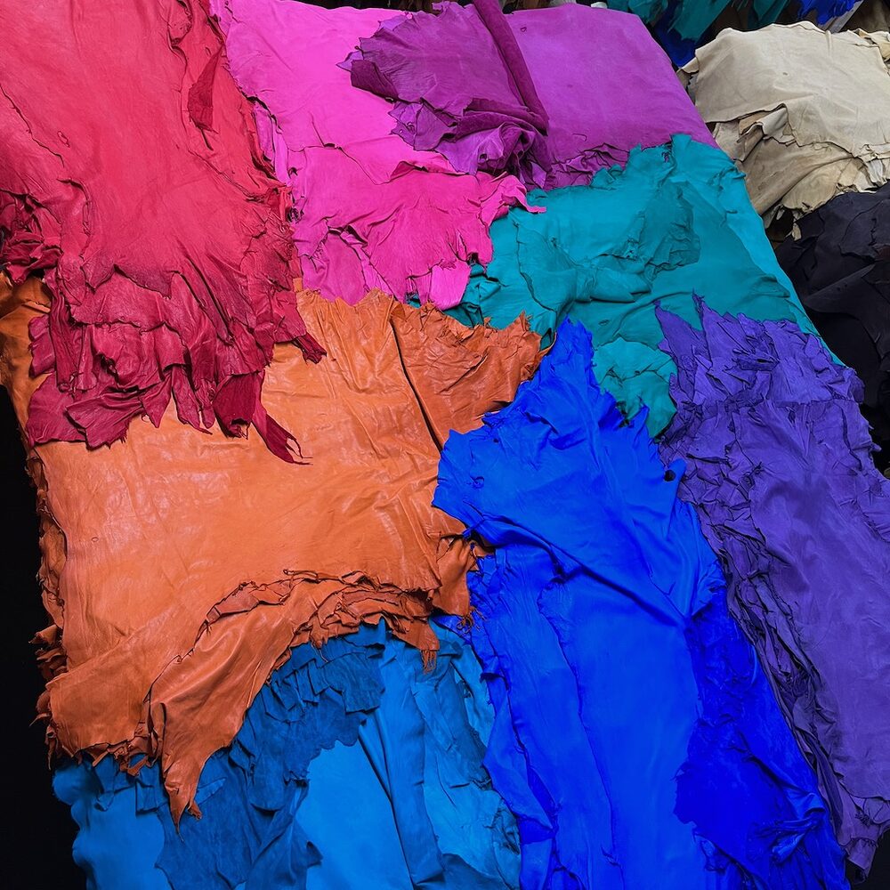 Deer & Moose Leather “mix it up bundles”: We created this category so you could bundle up a variety colours and get a bundle discount. There is nothing more exciting than playing with an abundance of colour. And even more fun is mixing colours up in a single project. Each Deer bundle will include 5 full hides totalling 50 sq ft with the pieces averaging 10 sq ft. For moose they will be quarters which are smaller than full deer so each bundle will include 7 or 8 different hides of 5 colours. If you want while checking out please write in your colour preference (white is not available) in the Detail your Request box or we can pick for you.
