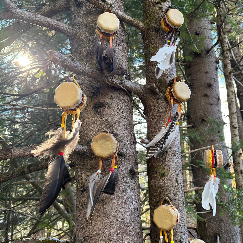 I know you’re thinking of using these in your Christmas tree and you’re totally right ! We also think they would be PERFECT as rear view mirror ornament. They are the adorable mini replica of our 4 Directions Powwow Drums !