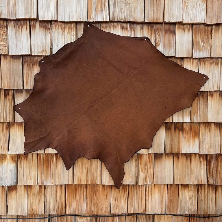 New leather coming in weekly!!! Our leather is from the Laurentian Mountains, north of Montreal in Canada. Each year during hunting season we recuperate hides from hunters who are feeding their families, but don’t need the hides. We gather them, process them and have them tanned at a local Canadian tannery. 100% Canadian…in fact the moose were bilingual.